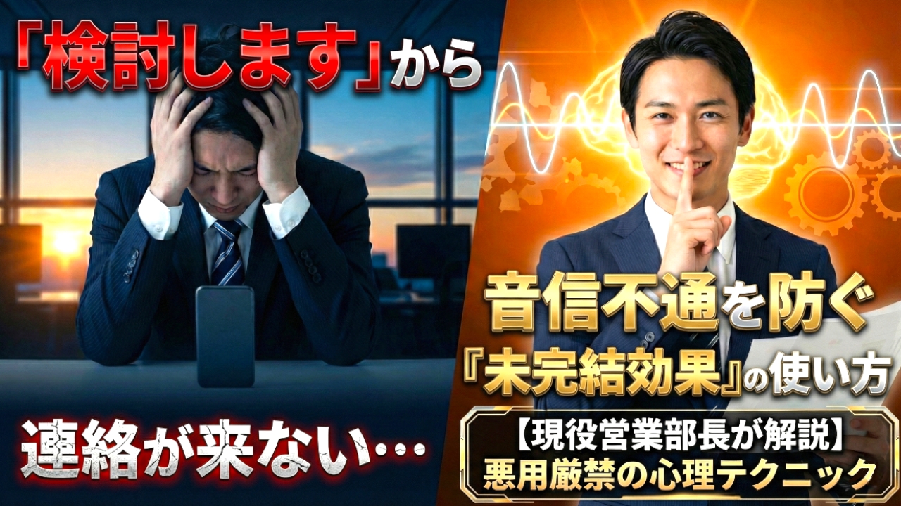 今日は、全営業マンの天敵である「検討します詐欺(音信不通)」を、科学的なアプローチで完全攻略します。